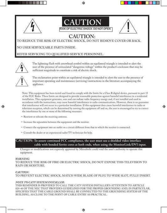 Mitsubishi LT40153 LT46151 LT46153 TV Operating Manual