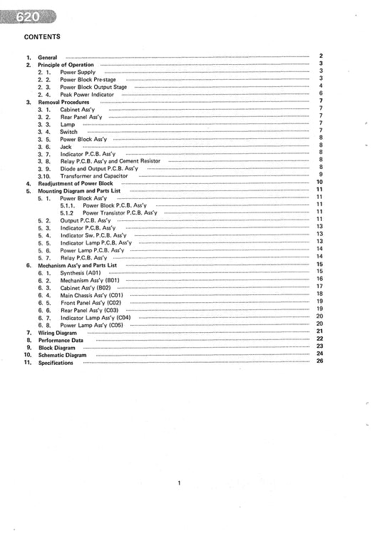 Nakamichi Model 620 Power Amplifier Service Manual (Pages: 33)