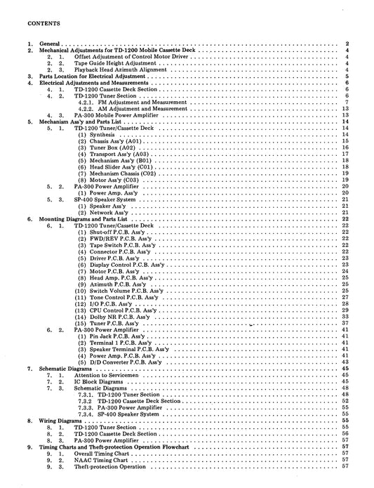Nakamichi PA-300, TD-1200 & SP-400 Tuner, Cassette, Amplifier Speaker System Service Manual (Pages: 66)