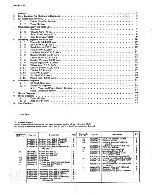 Nakamichi SR-3, SR-3 A & E Stereo Receiver Owner Service Manual (Pages: 69)