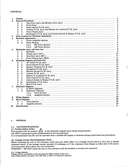 Nakamichi TA-1, TA-1A & TA-1E Tuner Amplifier Service Manual (Pages: 20)