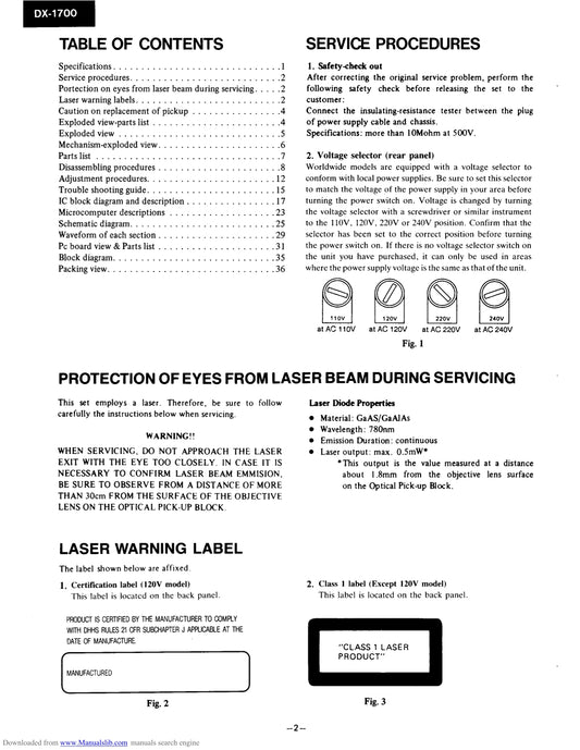 Onkyo DX-1700 CD Player Service Manual (Pages: 26)