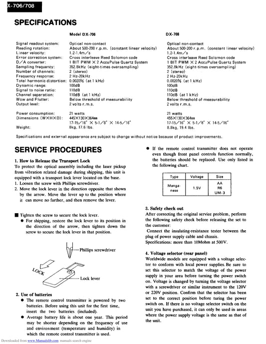 Onkyo DX-706 CD Player Service Manual (Pages: 40)