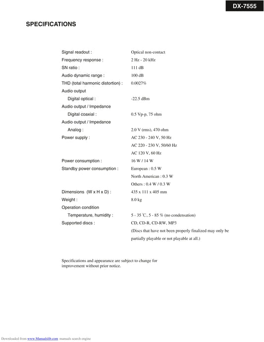 Onkyo DX-7555 CD Player Service Manual (Pages: 31)