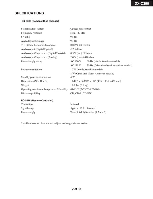 Onkyo DX-C390 CD Player/ Changer Service Manual (Pages: 63)