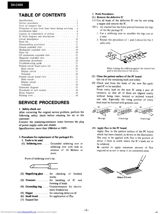 Onkyo DX-C400 CD Player/ Changer Service Manual (Pages: 36)