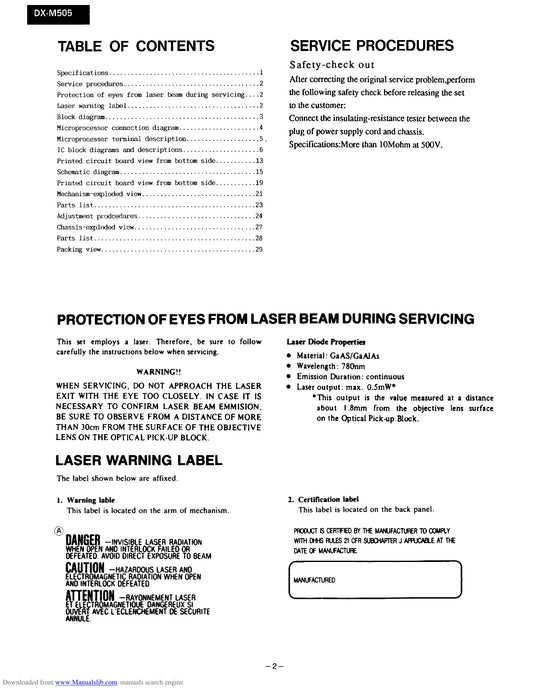 Onkyo DX-M505 CD Player Service Manual (Pages: 24)