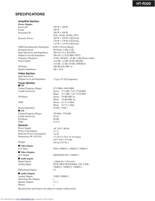 Onkyo HT-R320 AV Receiver Service Manual (Pages: 56)