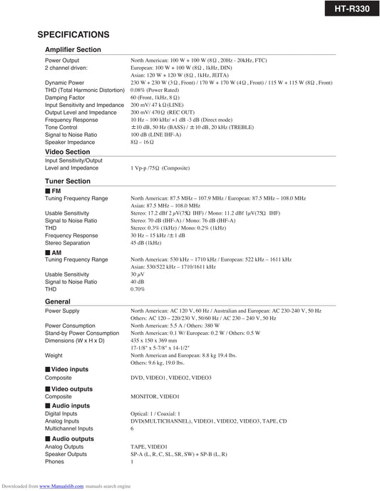 Onkyo HT-R330 AV Receiver Service Manual (Pages: 76)