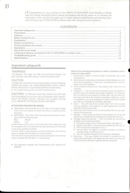 Onkyo TXSR703 E TXSR803 Audio/Video Receiver Operating Manual