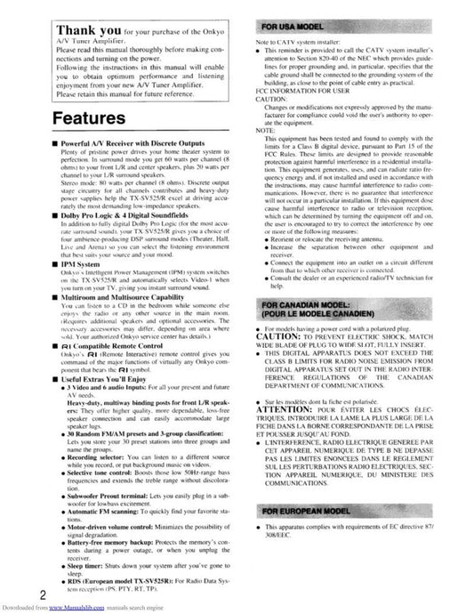 Onkyo TXSV525 Audio/Video Receiver Operating Manual