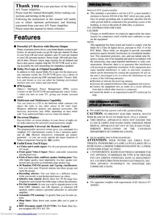 Onkyo TXSV727 Audio/Video Receiver Operating Manual