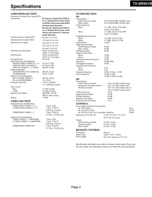 Onkyo TX-SR501 AV Receiver Service Manual (Pages: 61)