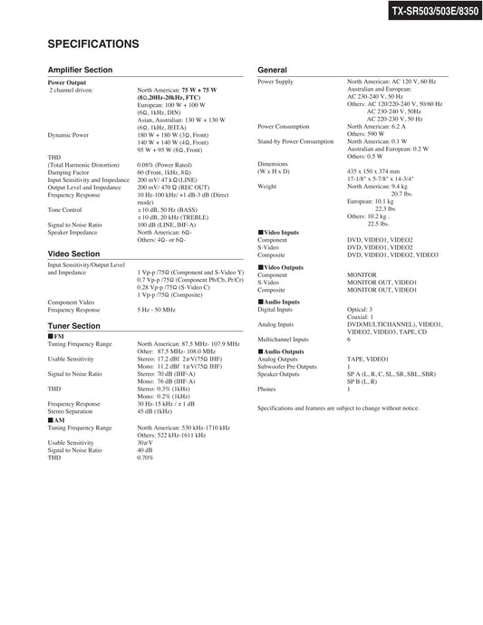 Onkyo TX-SR503 & TX-SR8350 AV Receiver Service Manual (Pages: 142)