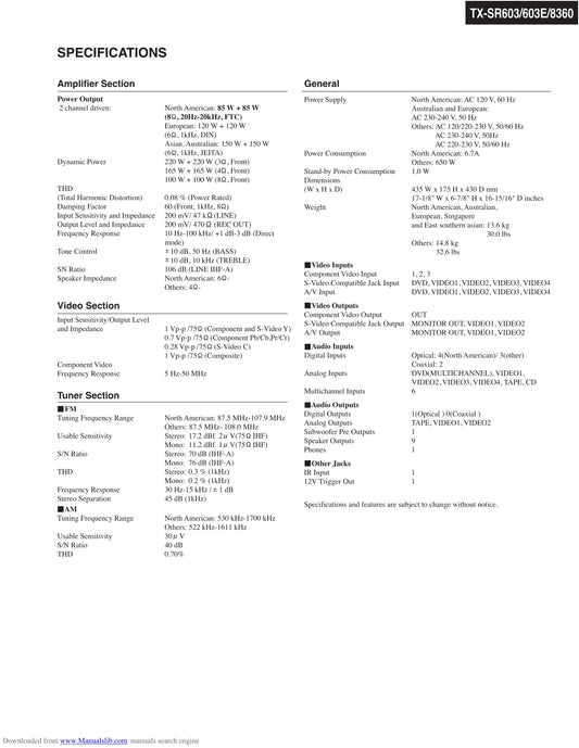 Onkyo TX-SR603 & TX-SR8360 AV Receiver Service Manual (Pages: 62)