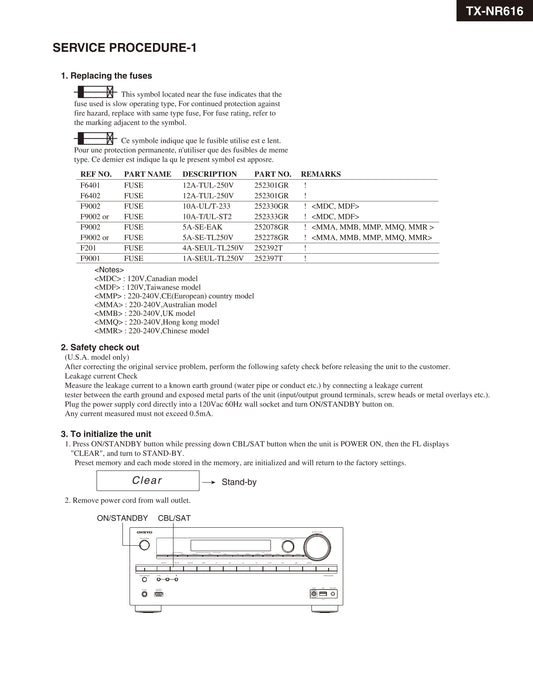 Onkyo TX-SE500 & TX-SV444 Synthesized Tuner Amplifier Service Manual (Pages: 23)