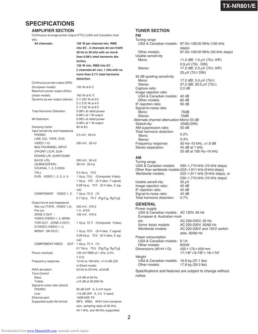Onkyo TX-NR801 & E AV Receiver Service Manual (Pages: 117)