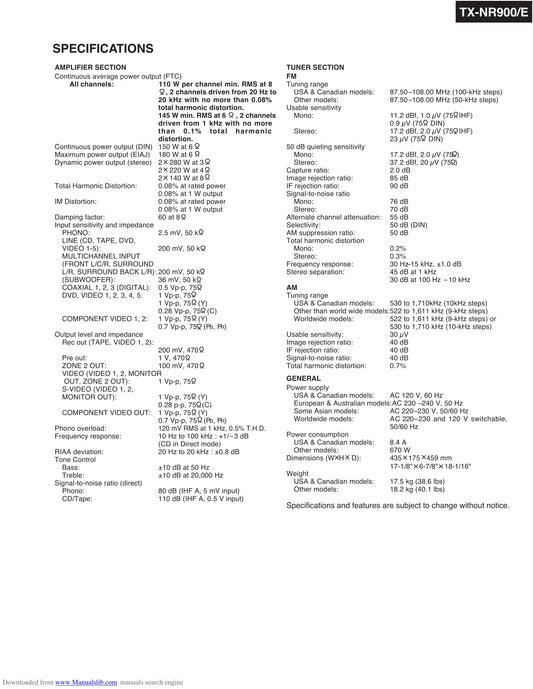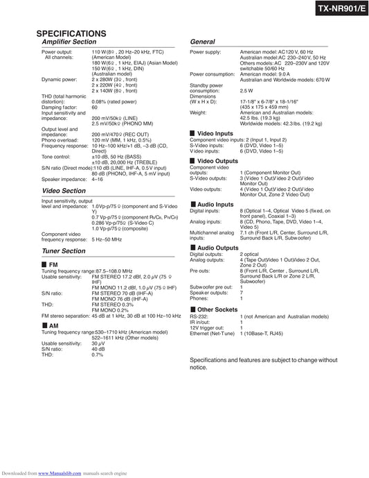 Onkyo TX-NR900 & E AV Receiver Service Manual (Pages: 82)