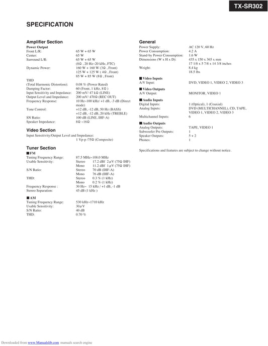 Onkyo TX-SR302 AV Receiver Service Manual (Pages: 67)