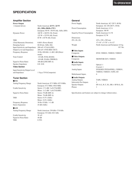 Onkyo TX-SR303 & E AV Receiver Service Manual (Pages: 150)