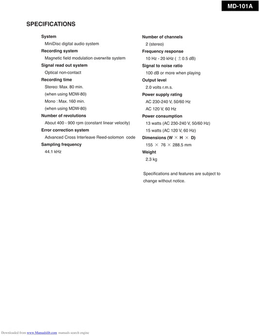 Onkyo MD-101A Mini Disc Recorder Service Manual (Pages: 39)