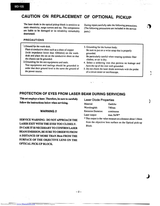 Onkyo MD-105 Mini Disc Recorder Service Manual (Pages: 46)