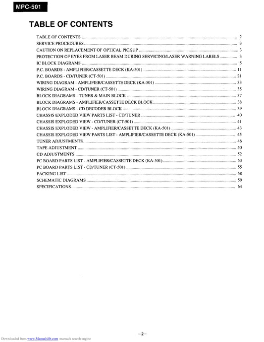 Onkyo MPC-501 CD Player Service Manual (Pages: 52)