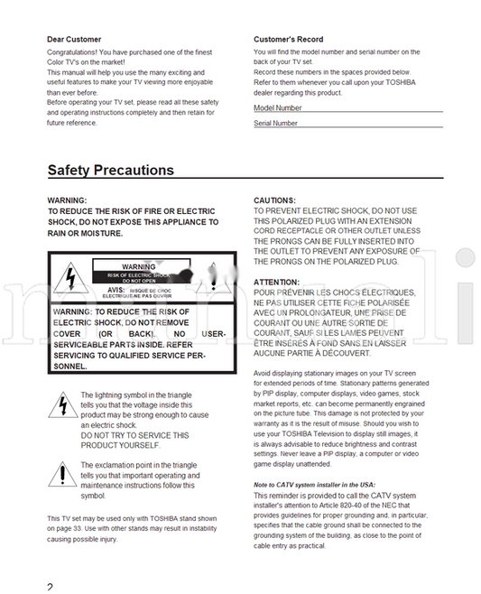 Toshiba 26HF86C 30HF86C (88 pages) TV Operating Manual