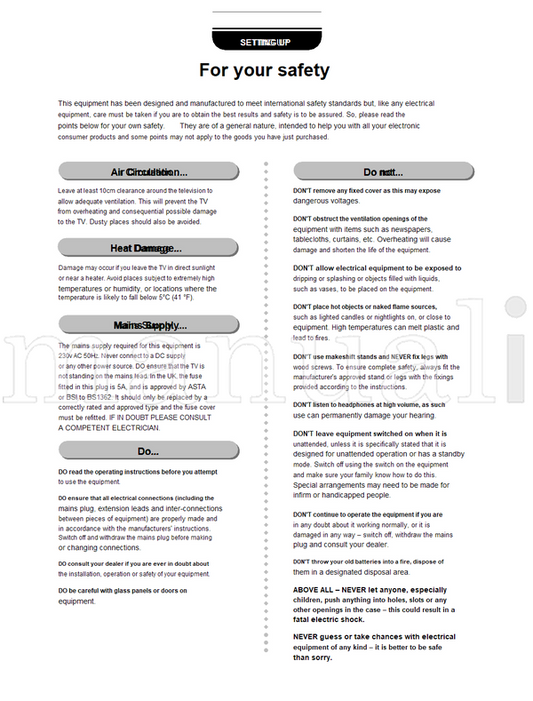 At Manuali, we pride ourselves on providing a comprehensive assortment of operating manuals that cater to a wide range of electronic devices, such as televisions and musical equipment. Our collection is regularly updated to ensure that we have the latest manuals available to help you operate your devices with ease. So, whether you're a tech enthusiast or just someone who needs a little guidance, browse our collection today and discover the value of having a reliable operating manual.