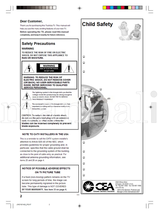 Toshiba 19A24 3M21501A-E (47 pages) TV Operating Manual