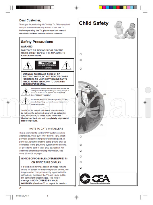 Toshiba 13A25 (15 pages) TV Operating Manual