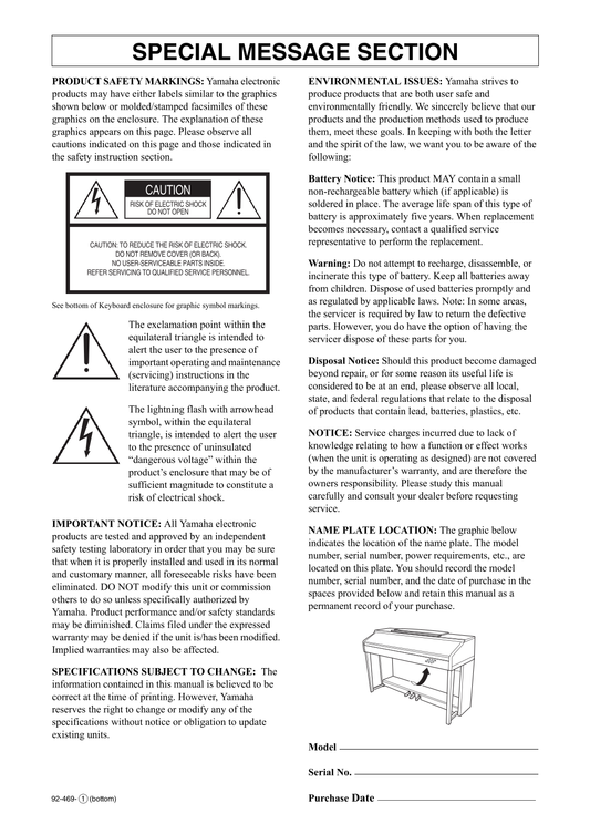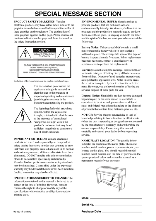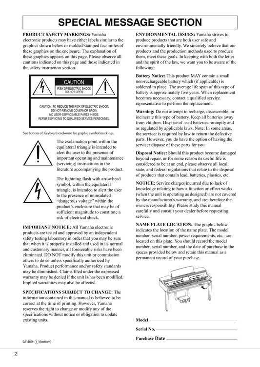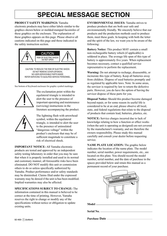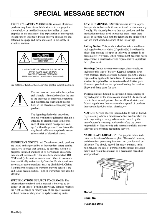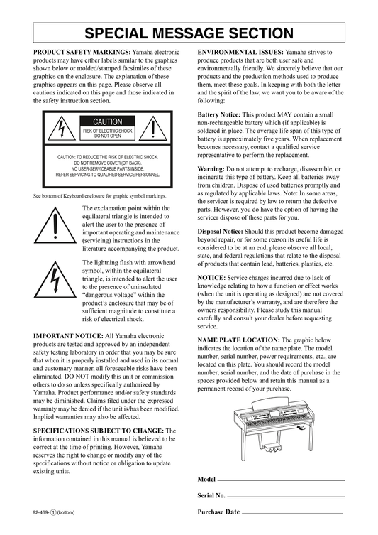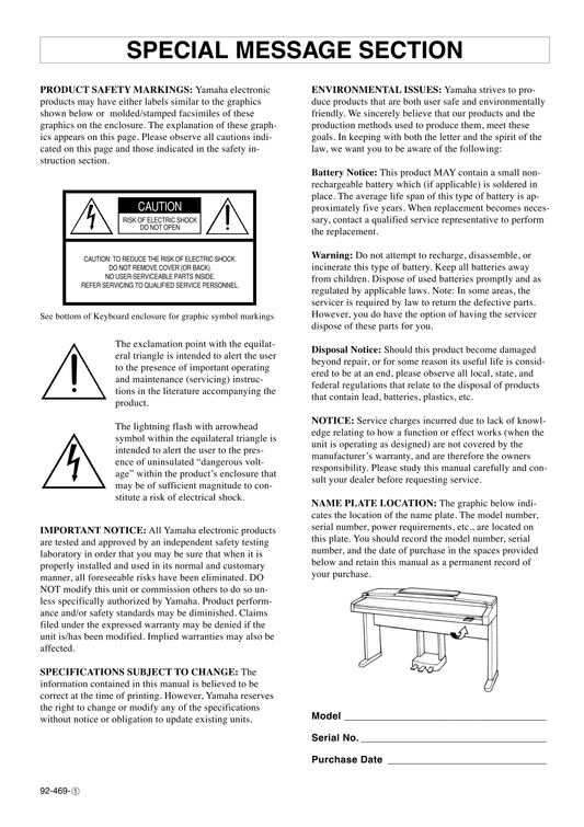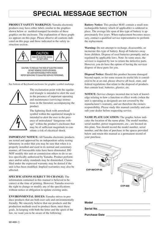 Yamaha CVP-601 Digital Piano Owner's/ User Manual (Pages: 117)