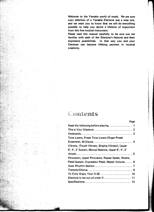 Yamaha D-30 Electone Organ Owner's/ User Manual (Pages: 16)