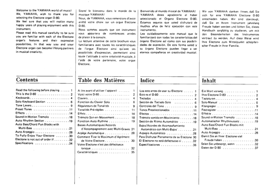 Yamaha D-80 Electone Organ Owner's/ User Manual (Pages: 40)