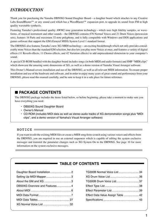 Yamaha DB50XG Sound Daughter Board Owner/ User Manual (Pages: 46)