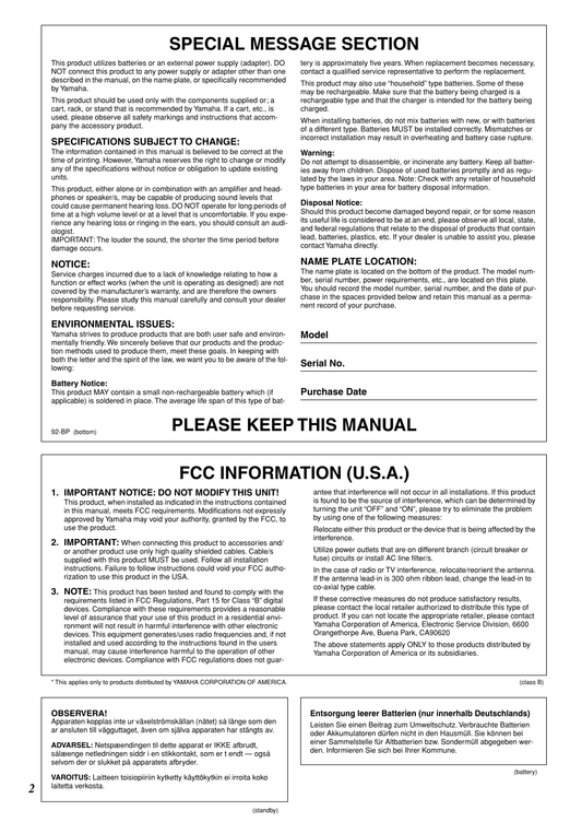 Yamaha CVP-92 & CVP-94 Digital Piano Owner's/ User Manual (Pages: 148)