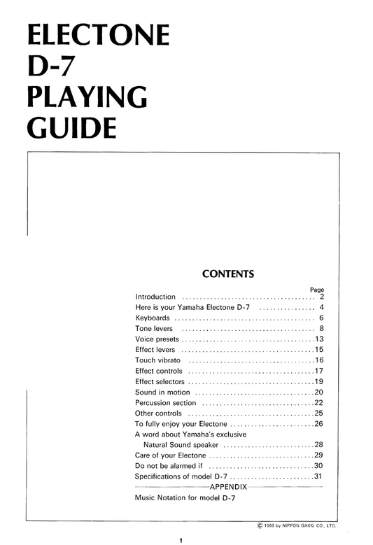 Yamaha D-7 Electone Organ Owner's/ User Manual (Pages: 36)