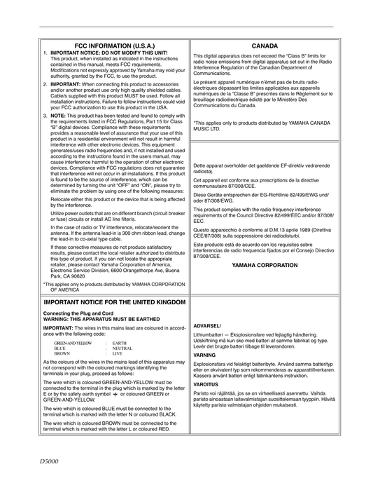 Yamaha D5000 Professional Digital Delay Owner/ User Manual (Pages: 42)