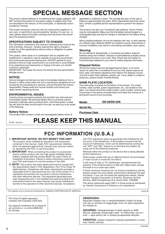 Yamaha DD-20 & DD-20S Electronic Drum Set Owner's/ User Manual (Pages: 15)