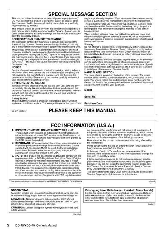 Yamaha DD-45 & YDD-40 Electronic Drum Set Owner's/ User Manual (Pages: 36)