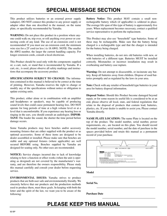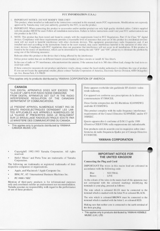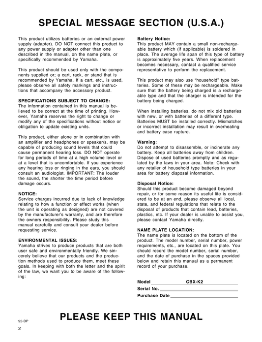 Yamaha CBX-K2 MIDI Keyboard Owner/ User Manual (Pages: 44)