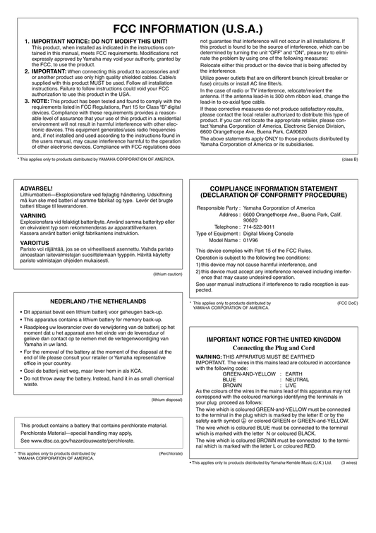 Yamaha 01V Digital Mixing Console Owner's/ User Manual (Pages: 303)