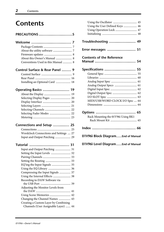 Yamaha 01V96i Digital Mixing Console Owner's/ User Manual (Pages: 71)