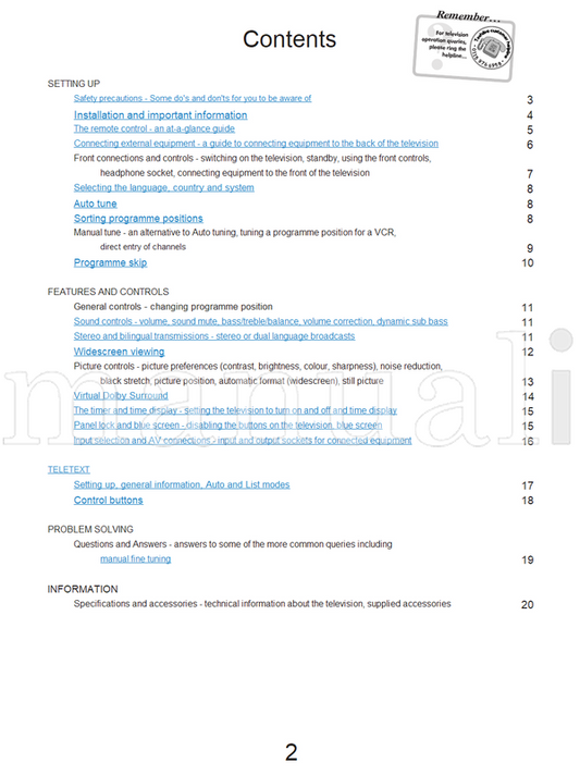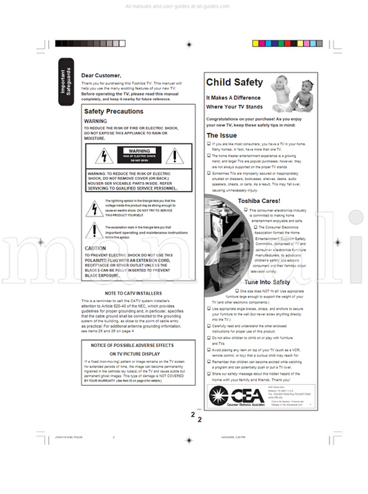 Toshiba 32WA3E 32WA2E 32WA23 (41 pages) TV Operating Manual
