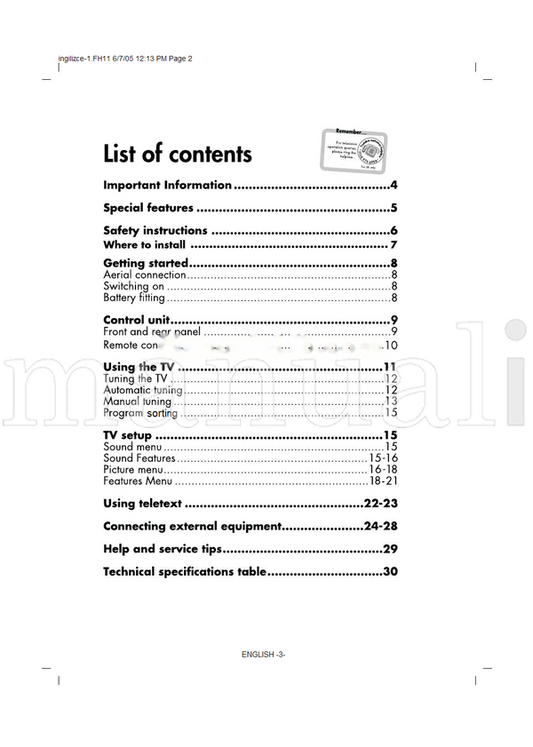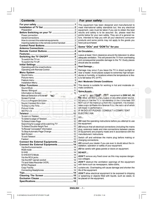 Toshiba 27DF47 163715 (30 pages) TV Operating Manual
