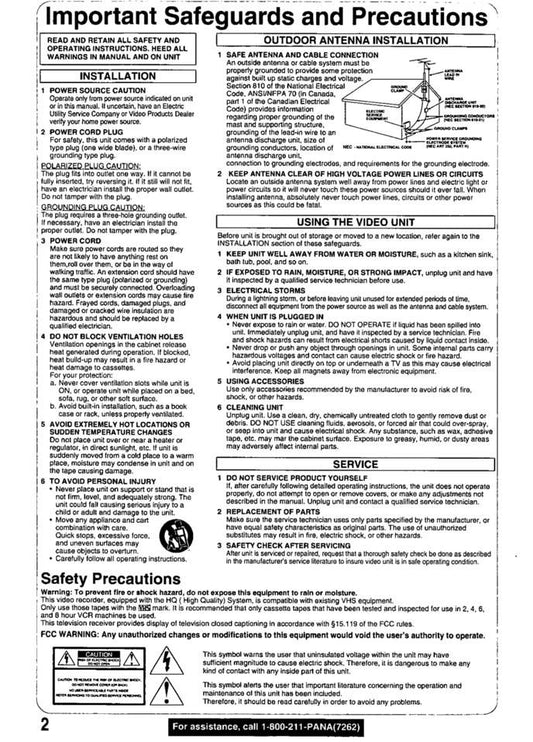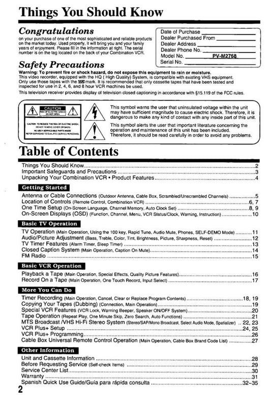Panasonic PVQV201 TV/VCR Combo Operating Manual