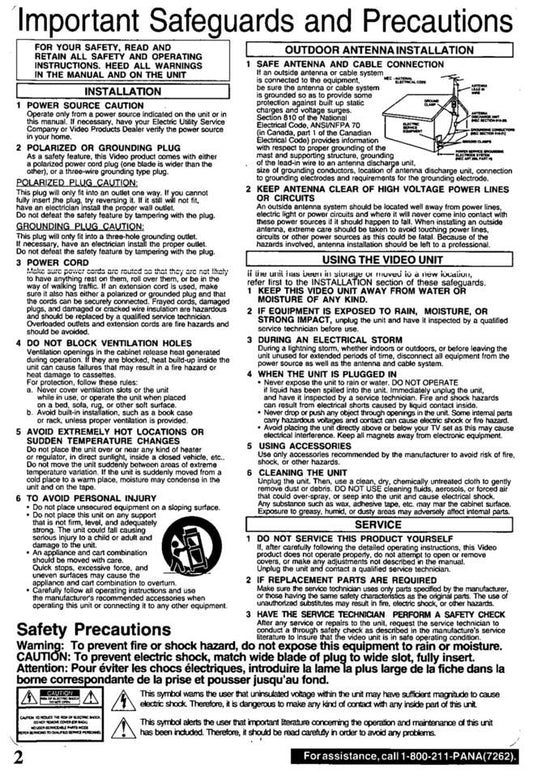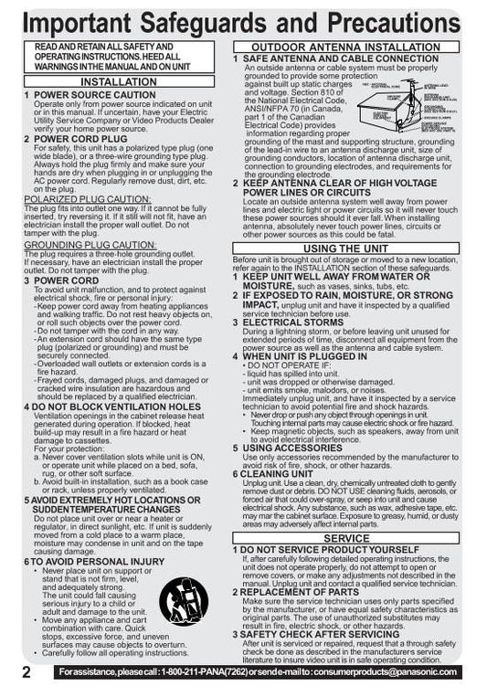 Panasonic PVQV200 VCR Operating Manual