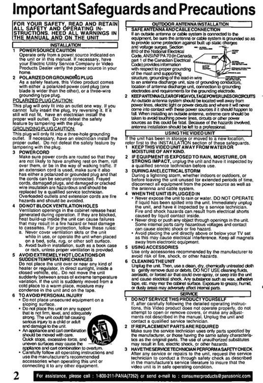 Panasonic PVC2020 PVC2030 VCR Operating Manual