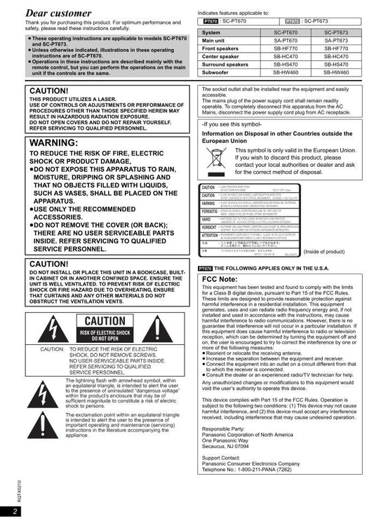 Panasonic SCPT670 SCPT673 Home Theater System Operating Manual