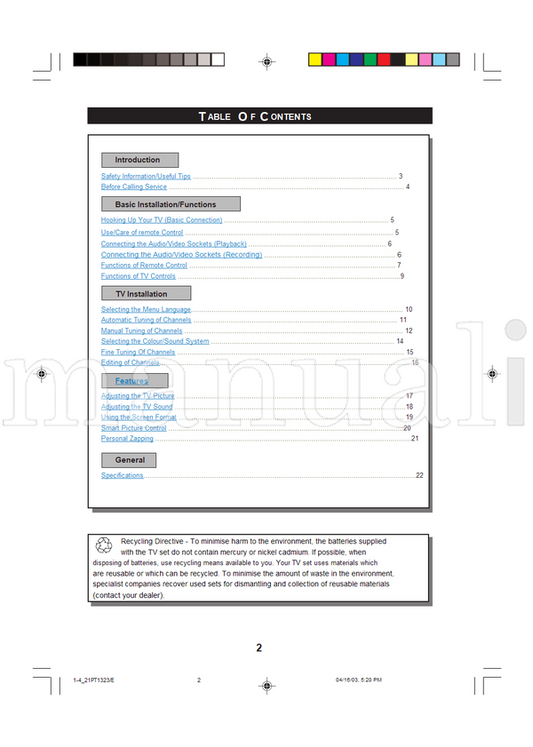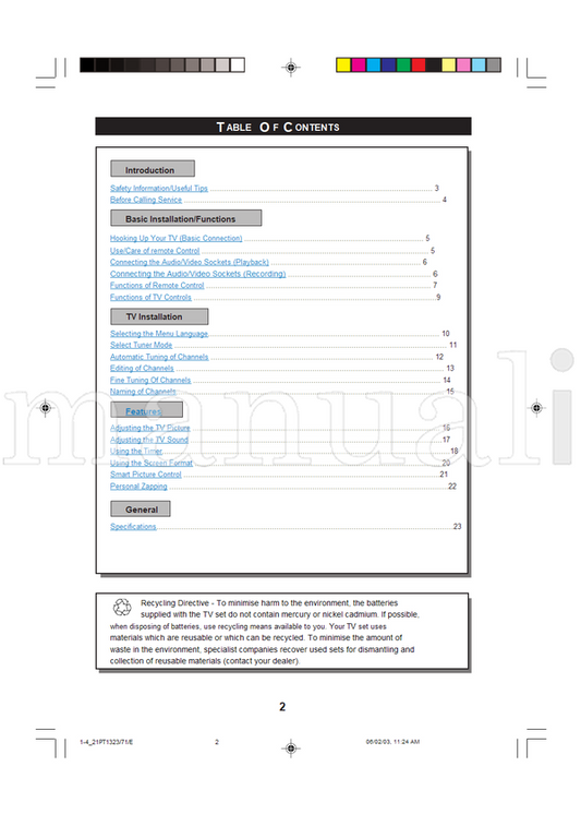 Philips 1-421PT1323 21PT1323 (23 pages) TV Operating Manual